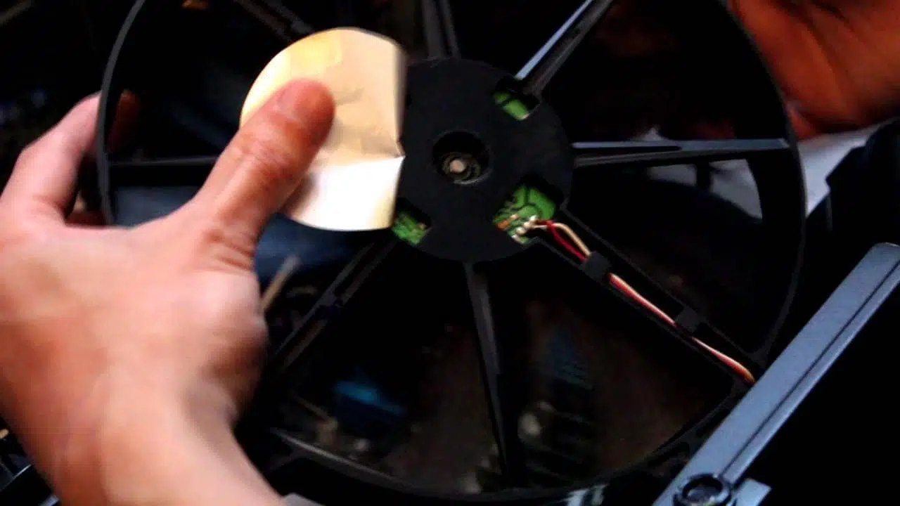 En la parte trasera de muchos ventiladores verás una pegatina. Retírala con cuidado hasta dejar expuesta la zona del eje o un pequeño orificio: ahí es donde debes aplicar una o dos gotas de aceite fino directamente sobre el eje. Haz girar el ventilador varias veces a mano para que el lubricante se reparta bien por el rodamiento.