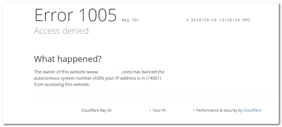 - Cloudflare u otro servicio similar ha bloqueado su dirección IP por violación de sus términos o cualquier comportamiento sospechoso.