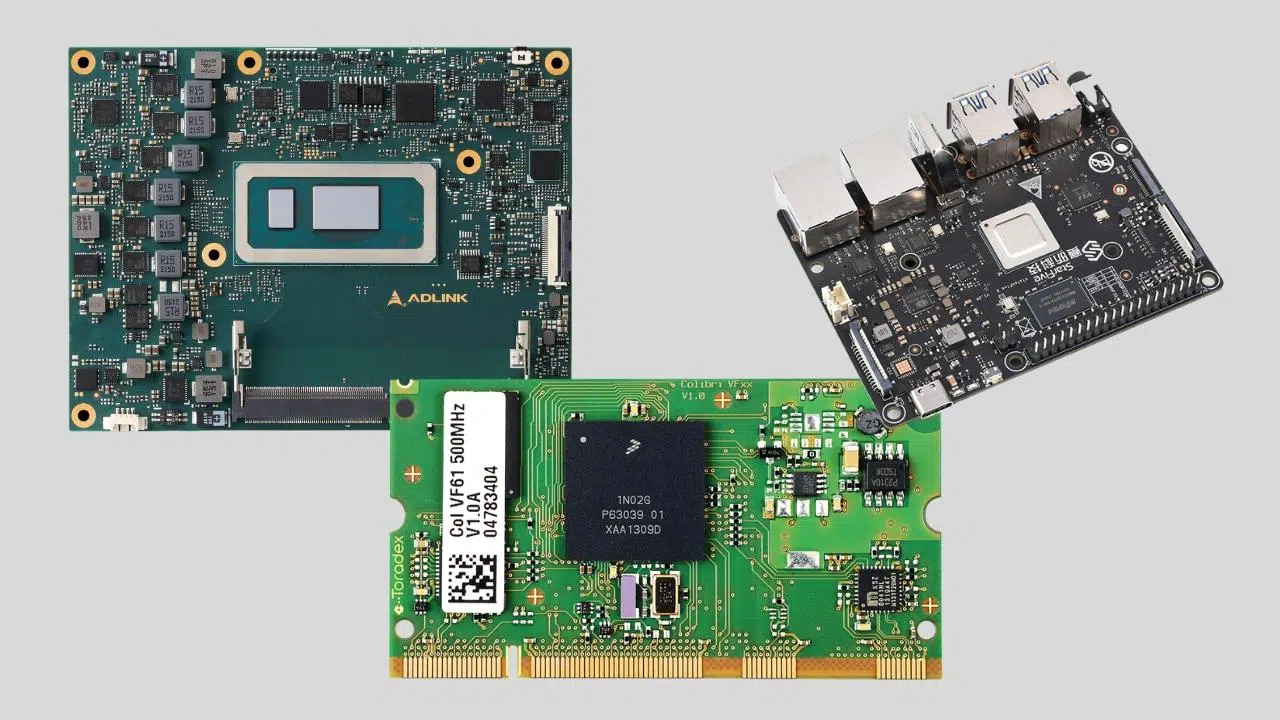 La diferencia práctica más relevante con muchos SoM es que los CoM tienden a orientarse a gamas de rendimiento más altas y se apoyan con frecuencia en estándares formales como COM Express, SMARC o Qseven. Es fácil ver CoM con procesadores x86 de Intel o AMD capaces de ejecutar cargas comparables a las de un PC de sobremesa o un portátil.