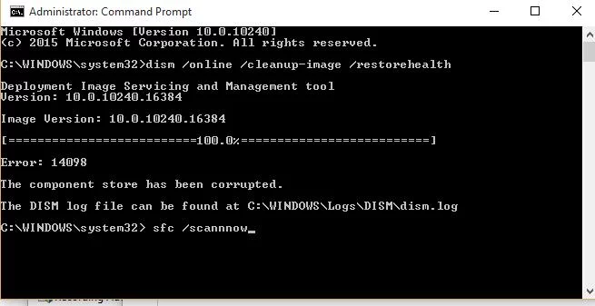 Error de DISM 14098, El almacén de componentes ha sido corrompido