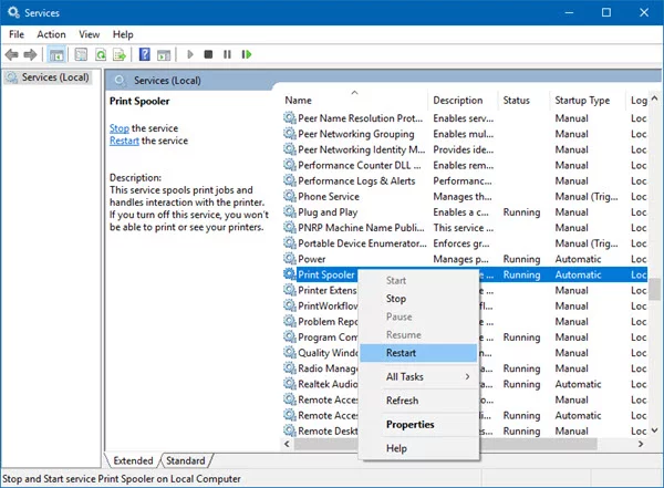 El Print Spooler Service en el sistema operativo Windows es responsable de administrar todos los trabajos de impresión y maneja la interacción con la impresora, y si deja de ejecutarse, no podrá imprimir nada desde su sistema. En tal situación, debería intentar reiniciar el servicio Print Spooler.
