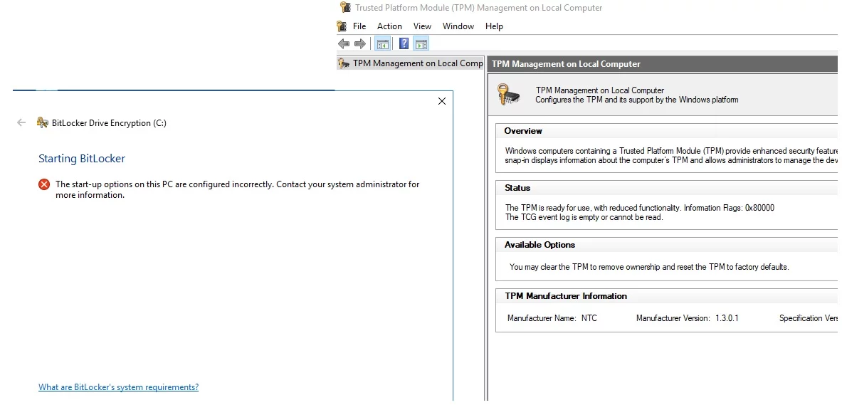 Las opciones de inicio de este PC están mal configuradas – Error de Bitlocker