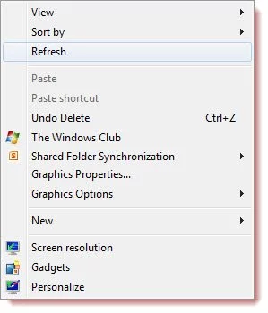 Estoy seguro de que debe haber notado que cuando hace clic con el botón derecho del ratón en el escritorio de Windows o dentro de una ventana abierta del explorador, ve una opción llamada Refresh en el menú contextual. La opción Refrescar ha estado allí desde que usted puede recordar!