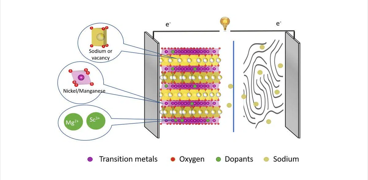 En cátodos, se han desarrollado materiales como el fosfato de hierro de sodio (NaFePO4), óxidos de manganeso y níquel de sodio (NaMn1/3Ni1/3Co1/3O2) y diferentes compuestos tipo azul de Prusia. En ánodos, el carbono duro ha sido el protagonista: se ha optimizado su estructura porosa y su comportamiento, y se investiga en materiales alternativos capaces de almacenar más sodio sin perder estabilidad.